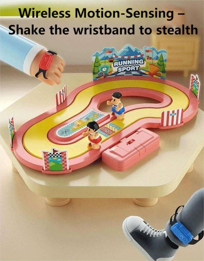 Представяме ви интерактивната детска игра Running Sport – забавление, движение и съревнование в едно. Тази иновативна играчка стимулира физическата активност, бързината и координацията, като превръща играта в истинско състезание. Децата контролират фигурките на бегачите чрез специални безжични гривни. Колкото по-бързо раздвижват ръцете, толкова по-бързо се движат състезателите по пистата.